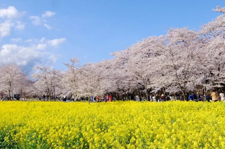 สวนขนาดใหญ่ริมแม่น้ำโทเนะ (Tone River) ที่รายล้อมด้วยซากุระกว่า 200–300 ต้น บรรยากาศสงบ เหมาะกับการปิกนิก ชมวิว และเดินเล่นรับลมเย็นของฤดูใบไม้ผลิ