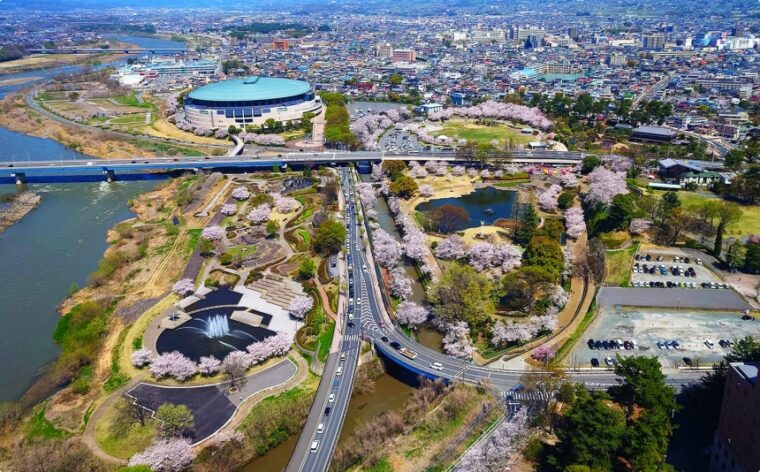 พื้นที่สีเขียวใจกลางเมืองที่รายล้อมด้วยซากุระกว่า 400 ต้น ตัดกับซากปราสาทเก่าแก่ บรรยากาศอบอุ่น มีร้านอาหารพื้นเมืองและไฟประดับสวยในตอนกลางคืน