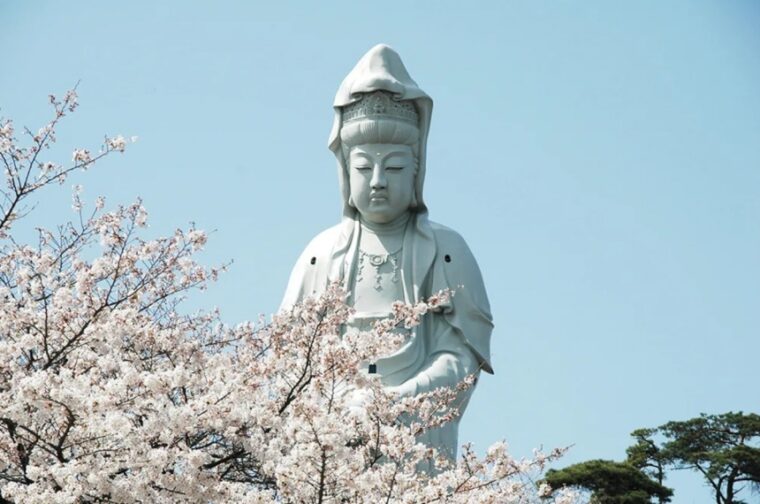 จุดชมวิวสุดอลังการที่มีรูปปั้น Byakue Dai-Kannon สูงถึง 41.8 เมตร รายล้อมด้วยซากุระหลายร้อยต้น เมื่อถึงฤดูใบไม้ผลิ สีชมพูของดอกไม้ตัดกับสีขาวของรูปปั้นกลายเป็นภาพที่สวยงามจับใจ
