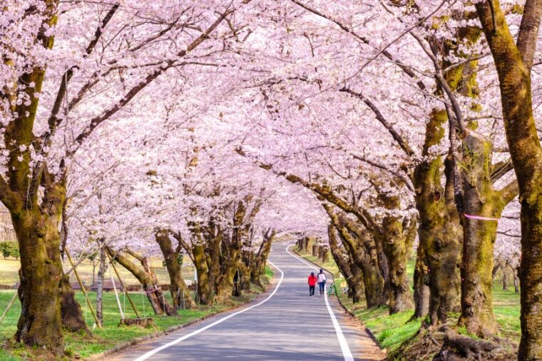 เส้นทางอุโมงค์ซากุระยาวกว่า 1.3 กิโลเมตร เรียงรายด้วยต้นซากุระกว่า 1,000 ต้น พร้อมทุ่งดอก Moss Phlox สีชมพูสดใสที่บานสะพรั่งอยู่ด้านข้าง สร้างทิวทัศน์สุดตระการตาในช่วงฤดูใบไม้ผลิ