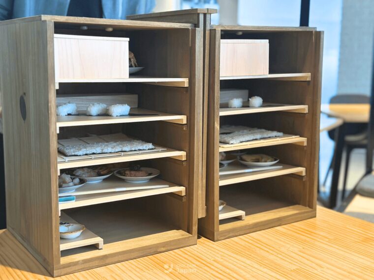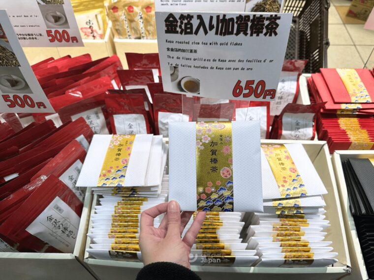 โดยเฉพาะ คากะ โบฉะ (Kaga Bocha) ชาท้องถิ่นชื่อดังของจังหวัดอิชิกาวะ ทำจาก “ก้านชา” ที่นำไปคั่วจนมีกลิ่นหอมเฉพาะตัว รสชาติจะนุ่มละมุน ไม่ขม และดื่มง่าย เป็นของฝากแนะนำมาก ๆ ของร้านนี้ค่ะ