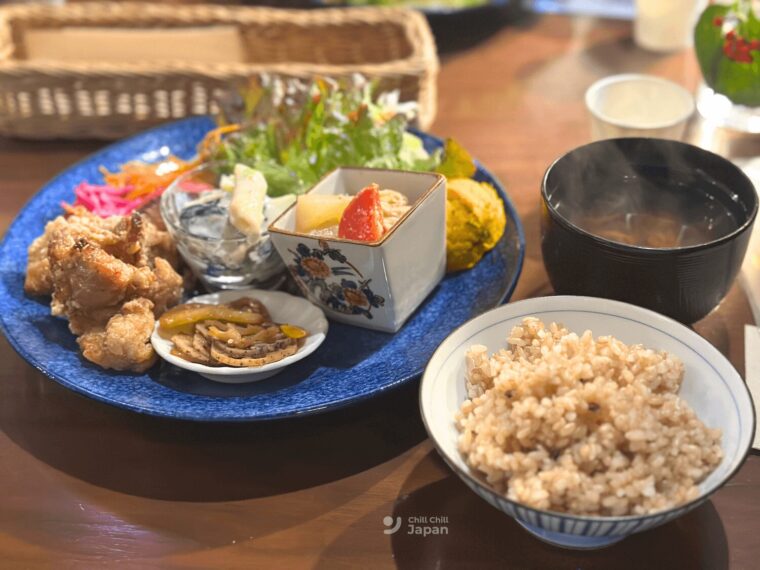 เมนูของร้านเน้นอาหารสไตล์โฮมเมดและวัตถุดิบท้องถิ่นตามฤดูกาล จัดเสิร์ฟอย่างสวยงามในรูปแบบเซ็ตอาหารญี่ปุ่นที่ทั้งอร่อยและดีต่อสุขภาพ เหมาะสำหรับแวะพักทานมื้อกลางวันแบบสโลว์ไลฟ์