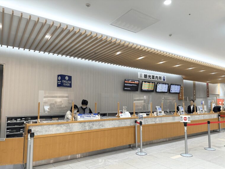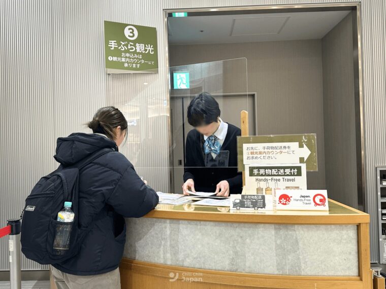 จุดบริการสามารถเดินออกจากประตูชินคันเซ็น แล้วข้ามไปฝั่งตรงข้ามจะมี Tourist Information Center (ศูนย์ข้อมูลการท่องเที่ยวคานาซาวะ) ที่ให้บริการรับ–ส่งกระเป๋าไปยังโรงแรมในเมือง
