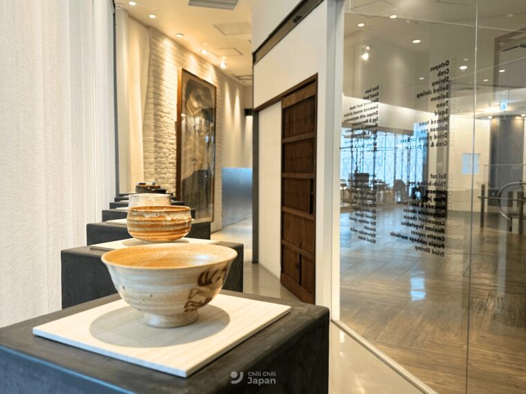 ภายในร้านตกแต่งแบบมินินอล แต่ผสมผสานนำความเป็นญี่ปุ่นเอาไว้ได้ลงตัว ไม่ว่าจะเป็นถ้วยชาลายสวย ๆ กิ่งซากุระ