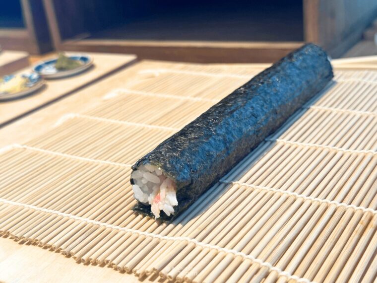 จากนั้นแนะนำให้ไปต่อกันที่ โฮโซมากิซูชิ ซึ่งทางร้านจะวางข้าวบนสาหร่ายมาให้เราแล้ว เราก็มีหน้าที่ใส่วัตถุดิบซูชิที่ชอบ เรียงไส้เรียบร้อยก็เริ่มม้วนได้เลย !