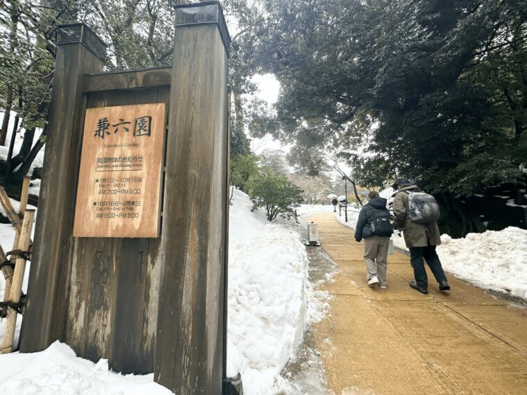 | วิธีการเดินทาง | ขึ้นรถบัสที่ Kanazawa Station แล้วลงที่ป้าย Kenrokuen-shita จากนั้นเดินต่อเพียงเล็กน้อยก็จะถึง Kanazawa Castle Park (ประตู Ishikawa-mon) และ Kenrokuen (ประตู Katsurazaka) ซึ่งเป็นทางเข้าหลักของสวน |