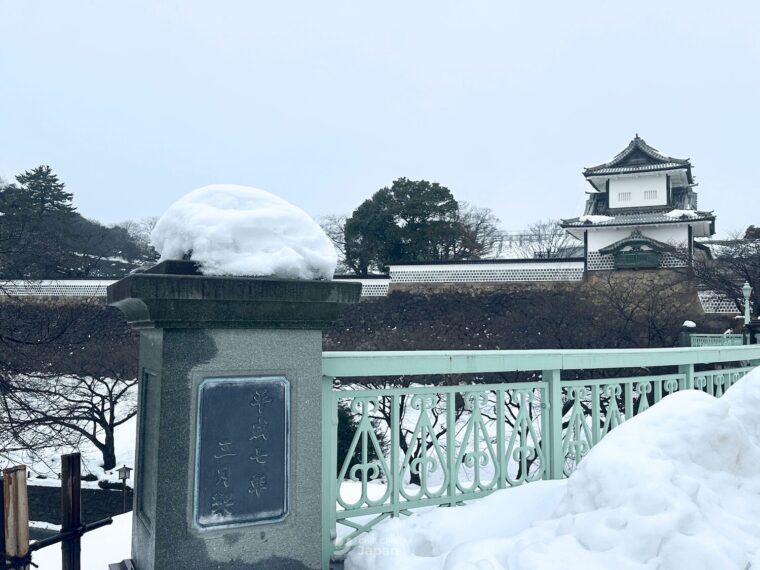 สวน Kenroku-en ยังอยู่ใกล้กับปราสาทประจำเมือง Kanazawa ด้วย ใครชอบประวัติศาสตร์ แนะนำให้เดินข้ามฝั่งไปชมปราสาทกันต่อได้เพลิน ๆ นะ