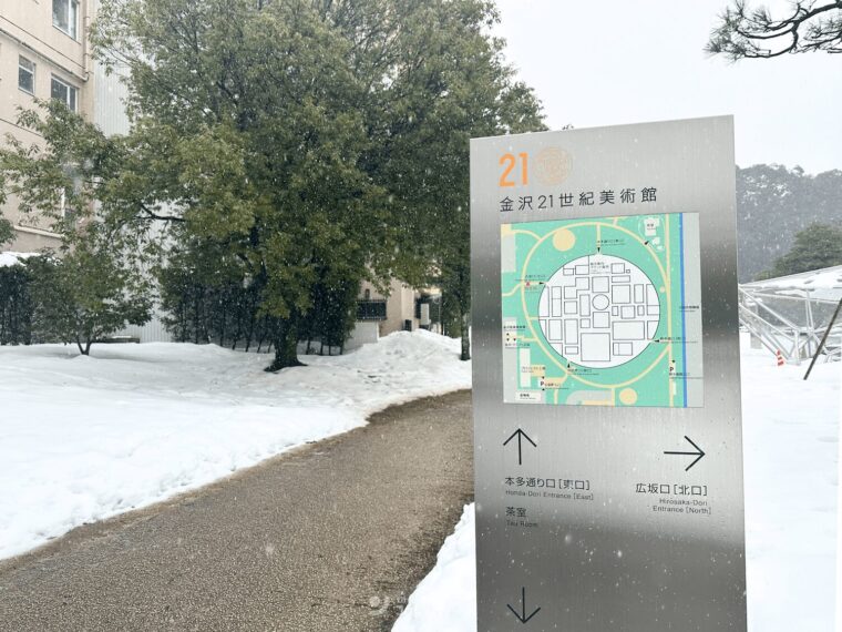 | วิธีเดินทาง | จาก สถานี JR Kanazawa บริเวณ Kanazawa Station Bus Terminal ทางออก Kenrokuen (East Exit) ขึ้นรถบัสที่ ป้ายหมายเลข 3 หรือ 8 ใช้เวลาประมาณ 10 นาที แล้วลงที่ป้าย “Hirosaka / 21st Century Museum of Contemporary Art” จากนั้นเดินถึงทันที |