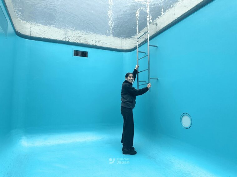 และเนื่องจากป้องกันความแออัด ในการเข้าชมผลงานนี้จะต้องจองรอบในการเข้าชมค่ะ สำหรับใครที่อยากลองลงไปดูด้านล่างของสระว่ายน้ำ แนะนำให้จองล่วงหน้าในวันที่จะมาได้เลยค่ะ สามารถจองรอบทางออนไลน์ได้ที่ลิงก์ด้านล่างนี้เลย