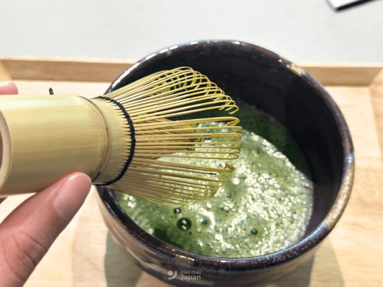 ในเซ็ตนี้ยังรวมกับการลองชงชาด้วยตัวเองอีกด้วยนะคะ โดยระหว่างเตรียมอาหาร พนักงานจะพาเรามาสอนชงมัทฉะกันด้วยตัวเองค่ะ