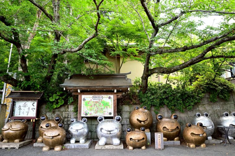 วัดนี้มีอีกฉายาว่า วัดกบ ที่มาของฉายานี้คือ จุดเด่นของวัดนี้ที่ไม่เหมือนกับที่อื่นๆก็คือรูปปั้นกบมากกว่า 1,000 ตัว ซึ่งการถ่ายรูปใบไม้เปลี่ยนสีของที่นี่นั้น มักจะถ่ายกบเป็นฉากหน้าแล้วมีใบไม้เปลี่ยนสีที่สวยงามเป็นฉากหลัง ซึ่งเรียกได้ว่าเป็นบรรยากาศใบไม้เปลี่ยนสีที่ไม่เหมือนใคร และตอนกลางคืนจะมีการประดับไฟเป็นเวลา 3 วัน โดยมักจะจัดช่วงต้นเดือนพฤศจิกายน เป็นระยะเวลา 3 วันในช่วงวันหยุดสุดสัปดาห์