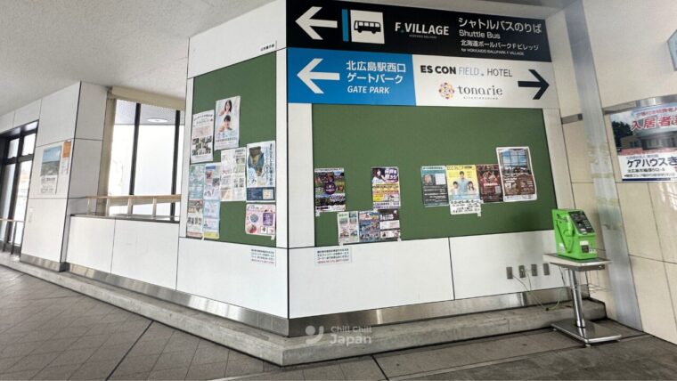 ขากลับสามารถเดินออกมาขึ้นรถชัตเทิลบัสด้านหน้า ES CON FIELD HOKKAIDO ได้เลย โดยบริเวณนั้นจะมีป้ายระบุชัดเจนว่าไปสถานี Kita-Hiroshima (北広島駅) ทำให้เดินตามป้ายและต่อรถกลับสถานีได้สะดวกมากค่ะ