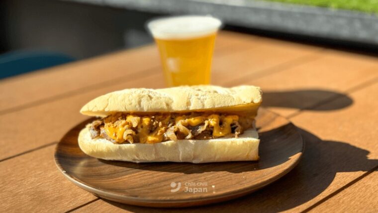 และเขาไม่ได้มีแค่เครื่องดื่มเท่านั้นนะ แต่ยังมีอีกหนึ่งเมนูซิกเนเจอร์อย่าง แซนด์วิชชีสยากินิคุเนื้อวากิวชิราโออิ ถือทานได้สะดวก จับคู่กินกับคราฟต์เบียร์ระหว่างชมการแข่งขันฟิน ๆ กันไปเลย