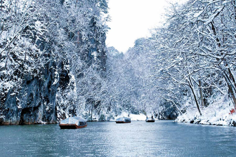 • ฤดูหนาว (ธันวาคม-กุมภาพันธ์): หิมะปกคลุมหน้าผาและต้นไม้ สร้างบรรยากาศสีขาวสะอาดตาดุจโลกเทพนิยาย