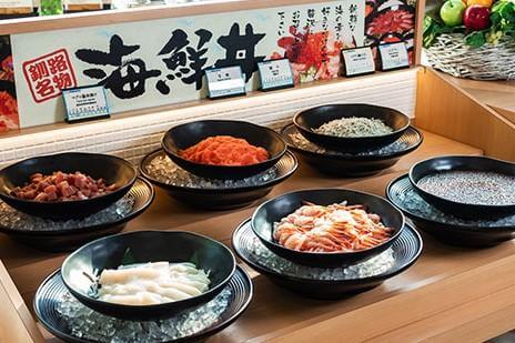 ・อาหารเป็นที่น่าพึงพอใจ ไม่ว่าจะเป็นบุฟเฟ่ต์อาหารเช้า หรือข้าวหน้าอาหารทะเล (ไคเซ็นด้ง - Kaisen Don)