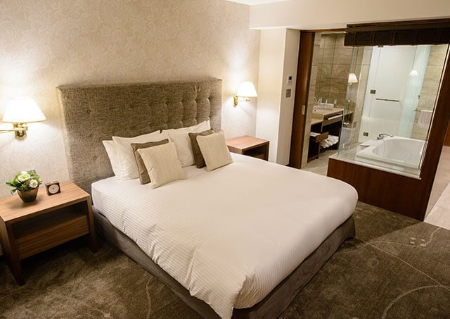 มาตรฐานใหม่ของการพักผ่อนในเมือง: ห้องพักทุกห้องมีขนาดกว้างขวางตั้งแต่ 24 ตารางเมตรขึ้นไป สามารถวางกระเป๋าเดินทางใบใหญ่ได้อย่างสบาย ๆ พร้อมให้คุณได้สัมผัสประสบการณ์สุดพิเศษที่ผสมผสานความสะดวกสบายกลางเมืองเข้ากับการพักผ่อนในออนเซ็น ณ สปาออนเซ็นบนชั้นสูงของโรงแรม (พร้อมบ่อกึ่งกลางแจ้งและซาวน่า)