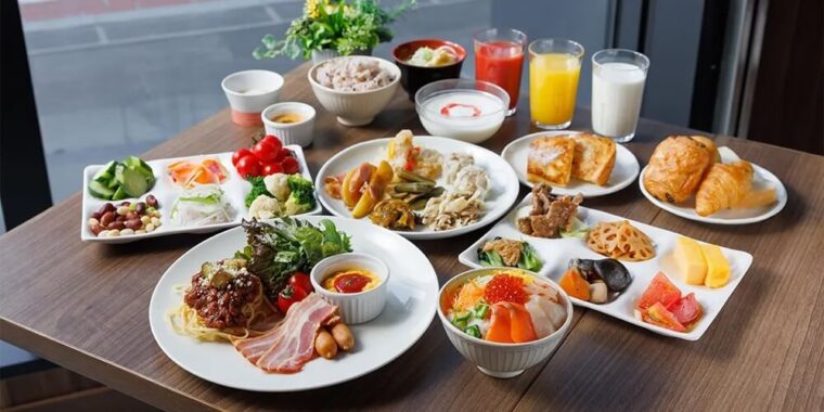 อาหารเช้า: เติมพลังยามเช้าด้วยบุฟเฟ่ต์อาหารญี่ปุ่น และตะวันตกกว่า 60 ชนิด