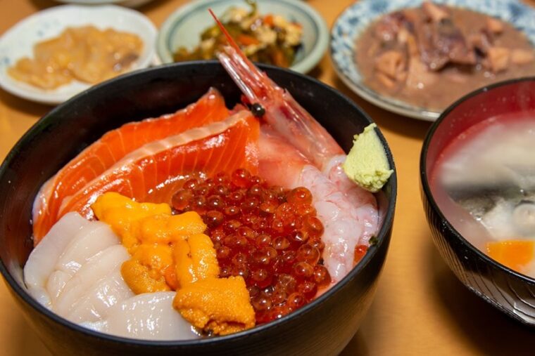 Kaisendon (海鮮丼) หรือข้าวหน้าซีฟู้ด คือเมนูที่กลายเป็นสัญลักษณ์ของตลาดเช้าฮาโกดาเตะแห่งนี้