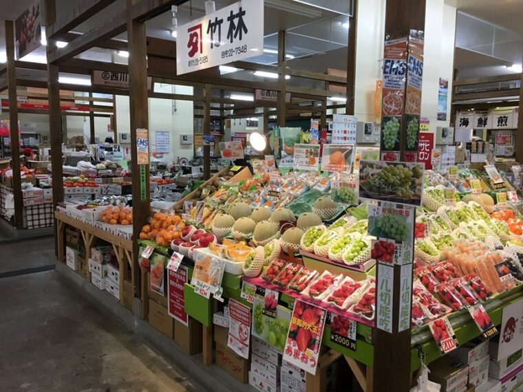 นอกจากนี้ยังมีโซนผักและผลไม้จากฟาร์มท้องถิ่น ในช่วงฤดูร้อน เมลอนและแตงโมฮอกไกโด จะกลายเป็นดาวเด่นของตลาด หลายร้านมีการแจกชิมฟรี