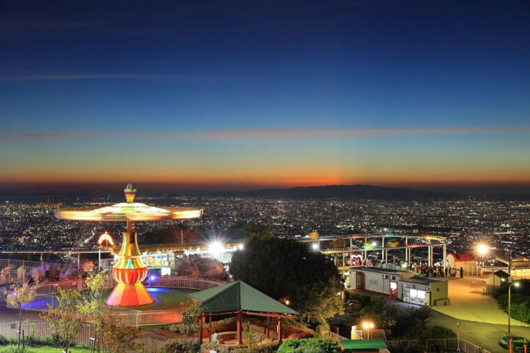 ที่ สวนสนุกอิโคมะซันโจว คุณสามารถดื่มด่ำกับวิวพาโนรามาของ ที่ราบโอซาก้าและแอ่งนารา ได้อย่างเต็มตา โดยเฉพาะในวันที่อากาศแจ่มใส ท้องฟ้าจะเปิดกว้างเผยให้เห็นทัศนียภาพอันงดงาม