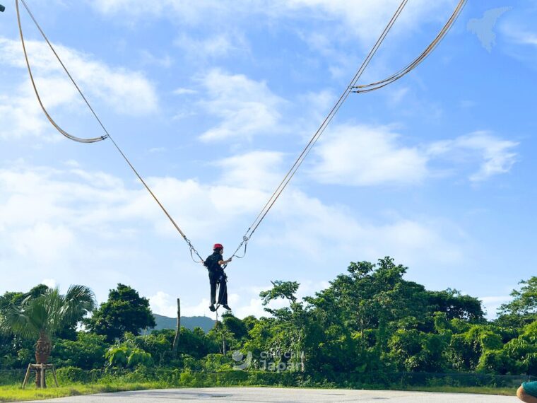 เครื่องเล่นซิปไลน์สุดหวาดเสียวที่เราจะได้กางแขนกว้าง แล้วออกโบยบินไปในกลางอากาศราวกับเป็นนก พร้อมชมวิวสวย ๆ ของ JUNGLIA OKINAW ราวกับมีปีกบิน!
