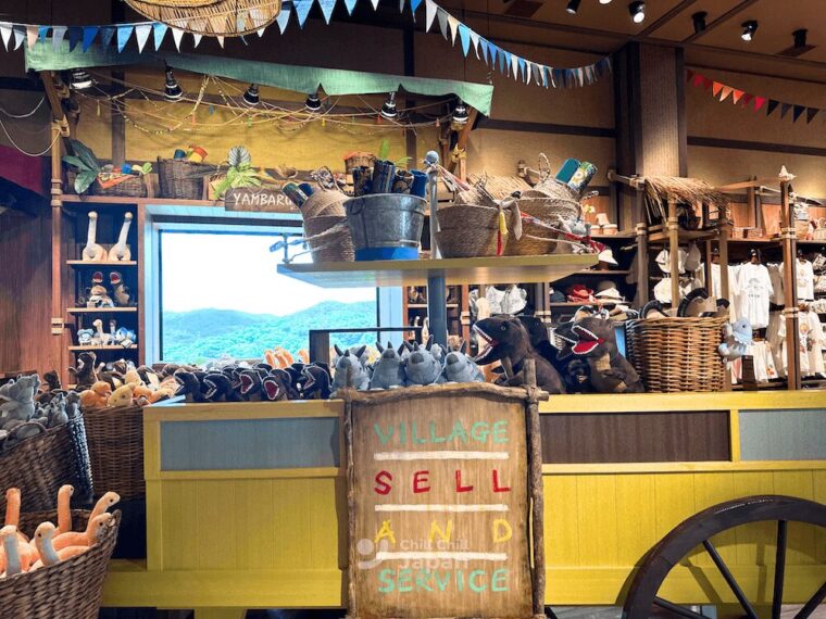 อีกหนึ่งจุดเด่นของ JUNGLIA OKINAWA ก็คือสินค้าของฝากของที่ระลึกสุดน่ารัก VILLAGE BAZAAR ขอบอกเลยว่าเขามีสินค้าให้เลือกมากมาย ทั้งสินค้าในธีมไดโนเสาร์ ธีมแอดเวนเจอร์ อีกทั้งดีไซน์ที่หลากหลายที่เหมาะกับทั้งทุกเพศทุกวัยเลย