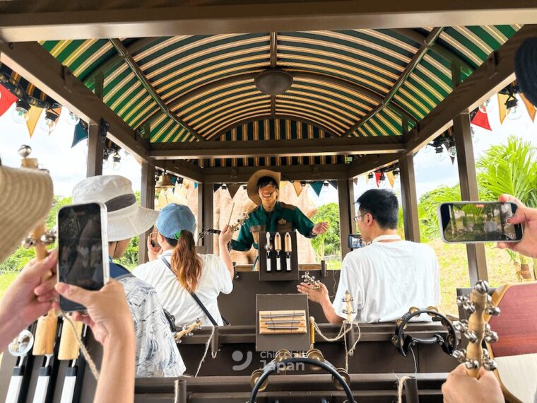นั่งรถไฟสุดบันเทิง TAM TAM TRAM : ภายใน JUNGLIA OKINAWA ยังมียานพาหนะที่จะพาเราไปเที่ยวตามจุดต่าง ๆ ได้แบบไม่ต้องเดินให้เมื่อยขา นั่นก็คือ TAM TAM TRAM รถไฟสุดครื้นเครงที่มีพนักงานคอยเอนเตอร์เทนเราให้สนุกสนานไปตลอดทาง พร้อมเสียงเพลงและรอยยิ้มตลอดเส้นทาง