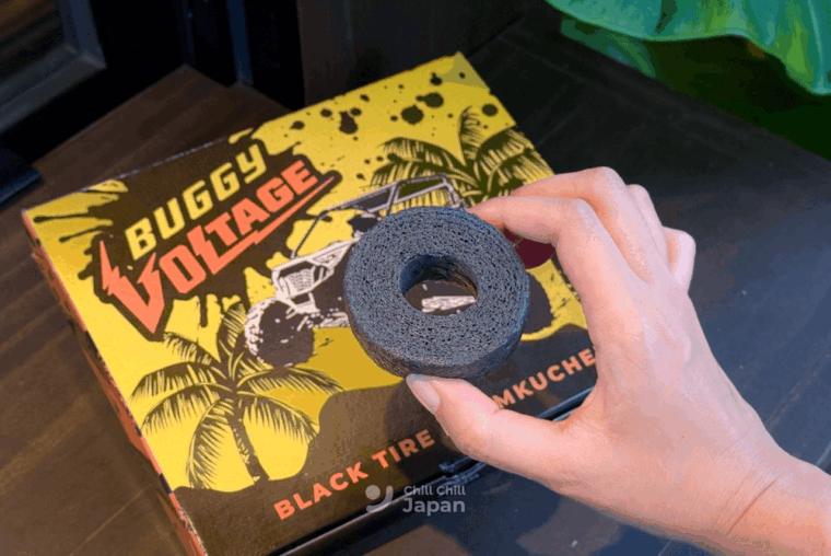 ขนมของฝากที่ทำออกมาในธีมเครื่องเล่นอย่าง ขนมบามคุเฮนที่ทำสีสันออกมาเหมือนล้อของรถวิบาก เครื่องเล่น BUGGY VOLTAGE เป็นของฝากที่ทั้งน่าอร่อยและเป็นเหมือนตัวแทนความทรงจำของความสนุกใน JUNGLIA OKINAWA อีกด้วยนะ