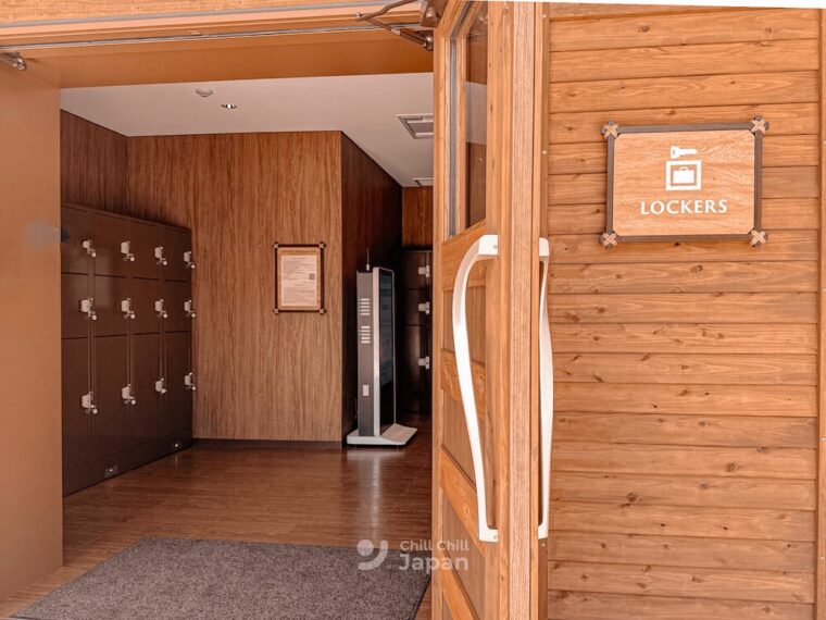 ล็อกเกอร์หยอดเหรียญที่ตั้งอยู่ด้านในประตูทางเข้า