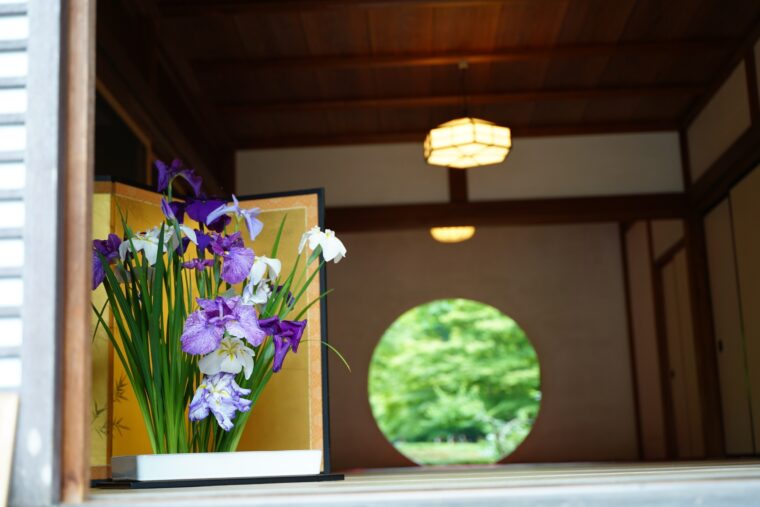 1. ช่วงเดือนมิถุนายน: เพื่อชมดอกไอริสที่บานสะพรั่ง ดอกไอริสสีขาวและสีม่วงจะสร้างภาพที่สวยงามเมื่อมองผ่านหน้าต่างวงกลม