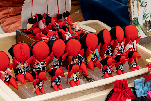 ตุ๊กตาซารุโบโบ (Sarubobo) – ตุ๊กตาผ้าแดงทรงลิงที่เป็นสัญลักษณ์ของเมืองฮิดะ เชื่อกันว่าเป็นของนำโชค เหมาะซื้อเป็นของฝาก หลายร้านในตลาดมีจำหน่าย