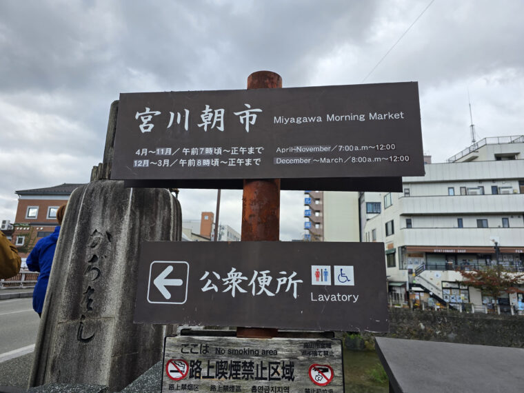 ถ้ายังนึกภาพทาคายามะไม่ออก ลองจินตนาการเมืองเก่าในเขตภูเขาตอนกลางของญี่ปุ่น ถนนหินปูเรียงแน่น บ้านโบราณสมัยเอโดะยืนรายเรียบ และแม่น้ำที่ไหลเย็นสะอาดผ่ากลางเมือง นั่นแหละคือทาคายามะ และริมแม่น้ำมิยากาวะ (Miyagawa River) แห่งนี้เองคือที่ตั้งของหนึ่งในตลาดเช้าที่ดีที่สุดในญี่ปุ่น