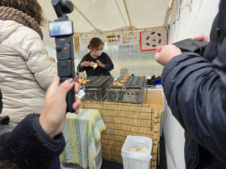 บรรยากาศที่นี่ต่างจากตลาดในเมืองใหญ่อย่างสิ้นเชิง ไม่มีความเร่งรีบ ไม่มีคนกรูเกรียว แผงขายของเรียงตัวอยู่กับเสียงน้ำไหลเบาๆ ในพื้นหลัง ผู้ขายส่วนใหญ่เป็นเกษตรกรและชาวบ้านท้องถิ่นที่มาขายของด้วยตัวเอง หลายคนสวมชุดทำงานแบบดั้งเดิมและผ้ากันเปื้อนญี่ปุ่น ให้ความรู้สึกว่าได้สัมผัสชีวิตจริงๆ ของเมือง ไม่ใช่ฉากท่องเที่ยวที่ตั้งขึ้นมาเพื่อรองรับนักท่องเที่ยวโดยเฉพาะ