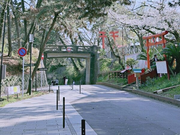 บริเวณทางเดินหลักที่ทอดตัวขึ้นสู่เนินเขา กิ่งก้านของต้นซากุระทั้งสองฝั่งจะโน้มเข้าหากันจนกลายเป็นอุโมงค์สีชมพูธรรมชาติ มุมนี้แนะนำให้ใช้เลนส์ซูม (Telephoto) ถ่ายจากระยะไกลเพื่อดึงภาพซากุระให้ดูแน่นและซ้อนทับกันเป็นอุโมงค์ที่สมบูรณ์