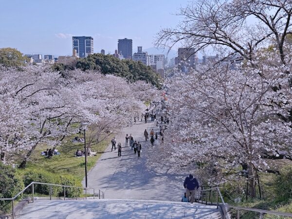 Nishi Park พิกัดชมซากุระในจังหวัดฟุกุโอกะที่ติดอันดับ "1 ใน 100 จุดชมซากุระที่สวยที่สุดในญี่ปุ่น" ด้วยซากุระกว่า 1,300 ต้นที่บานสะพรั่งตัดกับวิวสีครามของอ่าวฮากาตะ