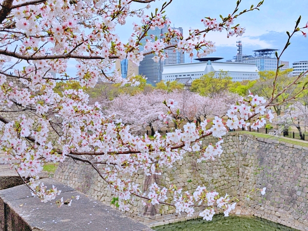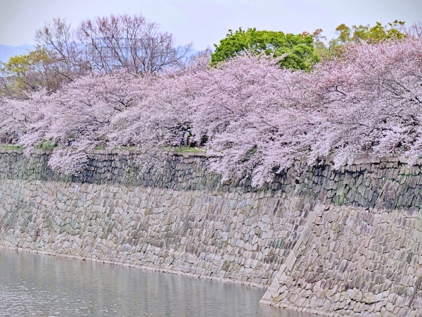 อีกจุดที่พลาดไม่ได้คือบริเวณรอบคูน้ำรอบๆปราสาทค่ะ เป็นอีกจุดที่สามารถถ่ายภาพสะท้อนของซากุระบนผืนน้ำได้ หรือถ่ายดอกซากุระกับกำแพงซากุระบริเวณนี้ส่วนมากเป็นพันธุ์โซเมอิโยชิโนะ (Somei Yoshino)ค่ะ สีชมพูจะอ่อนจนเกือบขาว ซึ่งตัดกับตัวกำแพงหรือผืนน้ำได้ดีมากๆ