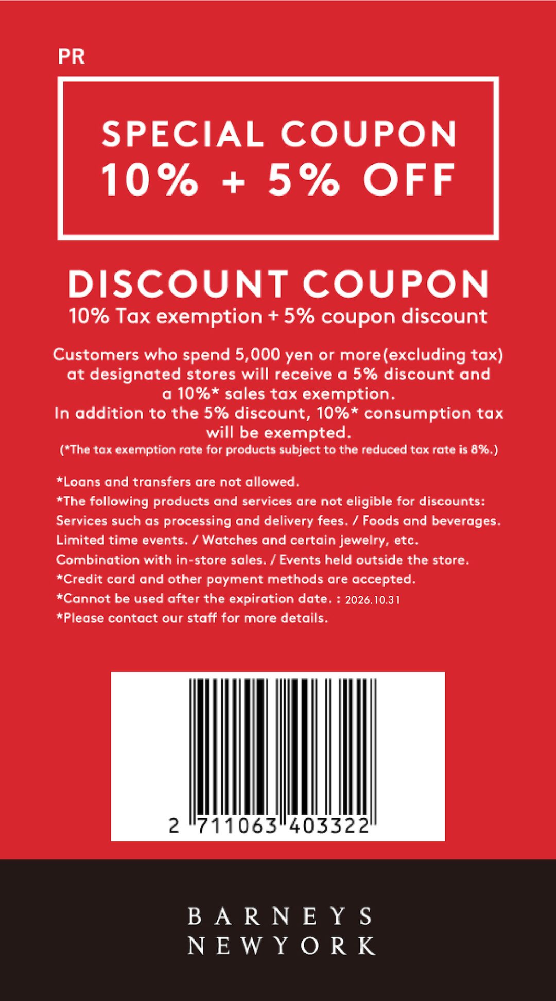 (คูปองส่วนลด) BARNEYS NEW YORK ปลอดภาษี 10% + คูปองส่วนลด 5%
