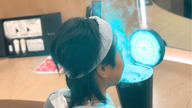 ซึ่งสามารถเลือกเปลี่ยนเป็น Blue Green Mask Lift (เพิ่มเงิน 1,100 เยน) มาสก์หน้าอัจฉริยะที่รวมทั้ง การยกกระชับ การบำรุงด้วยแสง LED เอาไว้ในชิ้นเดียว ช่วยกระตุ้นและคลายกล้ามเนื้อหน้า พร้อมดูแลผิวให้ดูสดใส สมดุลมากขึ้นก็ยังได้4) ความรู้สึกระหว่างทำ และหลังทำทันที