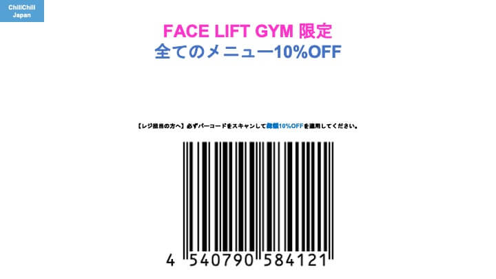 FACE LIFT GYM มอบคูปองส่วนลด 10% OFF สำหรับผู้อ่าน ChillChillJapan ใช้ได้ทั้ง 2 สาขา ที่ GINZA และสาขา Namba SkyO ให้ได้ไปใช้คอร์สยกหน้าดูแลตัวเองระดับพรีเมียมระหว่างเที่ยวญี่ปุ่นในราคาสุดคุ้มกันค่ะ