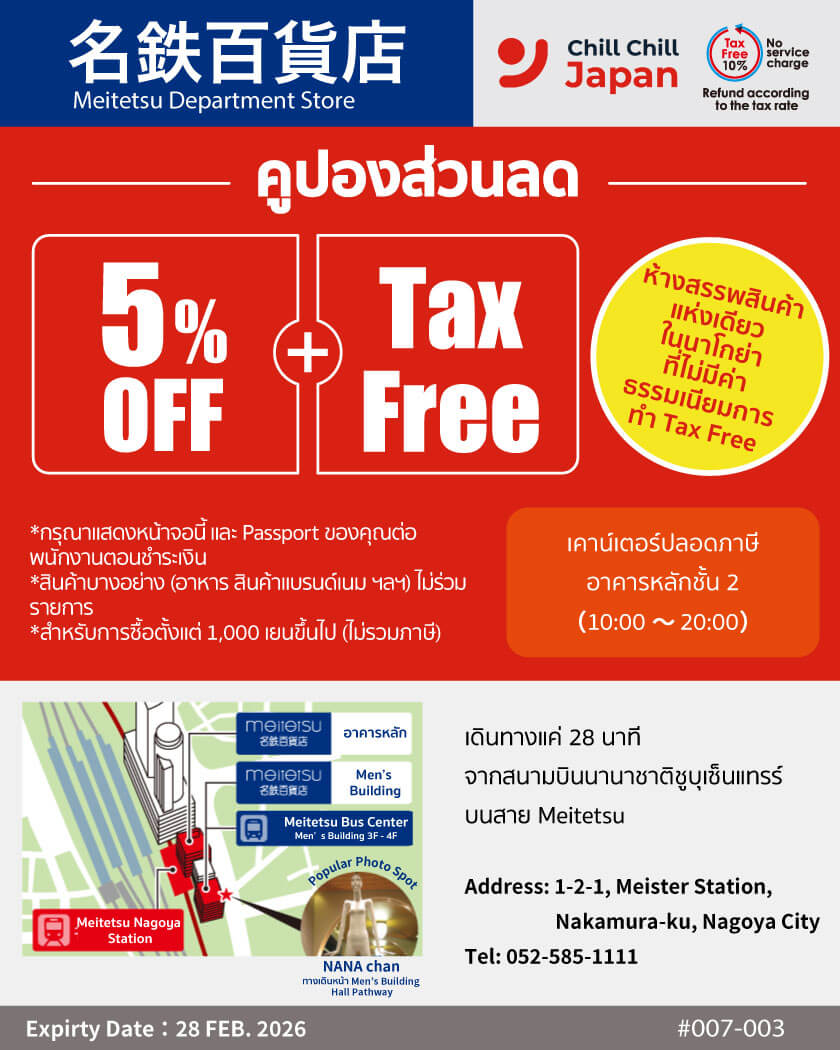 | ส่วนลด | ส่วนลด 5% + Tax free 8 หรือ 10% + ฟรีค่าธรรมเนียม Tax free |