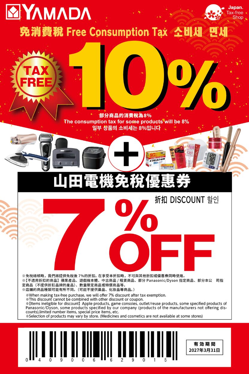 3. คูปองนี้สามารถใช้ได้ที่จุดชำระเงินปลอดภาษีที่ร้านค้าปลอดภาษีที่กำหนดของ Yamada Denki