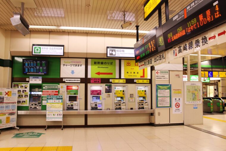 1.ตู้สีเขียว (Midori no Kenbaiki) จำหน่ายตั๋วชินคันเซ็น (Reserved/Non-Reserved) ตั๋ว JR ทั่วไป และทำการออกตั๋วสำหรับการจองออนไลน์ (SmartEX/e5489) ได้ และรองรับได้หลายภาษา