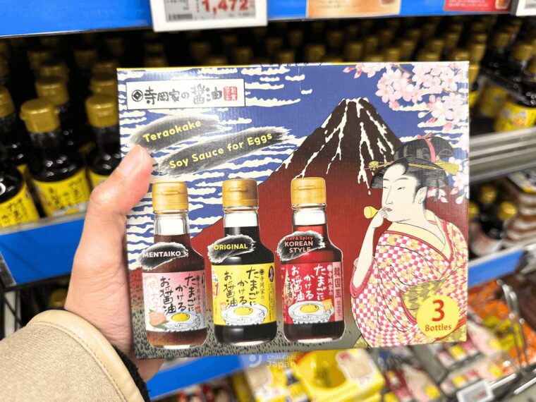 และนี่ก็คือซอสโชยุที่ทำขึ้นมาพิเศษเพื่อเหยาะลงบนไข่ดาวร้อน ๆ เพิ่มความอร่อยนัวให้กับข้าวไข่ดาวของเรา มีทั้งรสธรรมดา รสที่ผสมไข่ปลาเมนไทโกะ และรสที่ผสมน้ำมันงาด้วยนะ