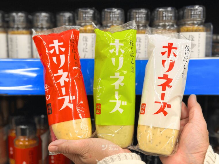 และนี่ก็คือมายองเนสจากแบรนด์เดียวกัน โฮรินิชิ ค่ะ ความพิเศษของมายองเนสตัวนี้คือใส่เครื่องเทศบางอย่างด้านในด้วย รสชาติจึงมีความอร่อยเป็นพิเศษไม่เหมือนใคร ส่วนตัวของแนะนำสีแดงรสเผ็ดค่ะ อร่อยนัวเหมือนมายองเนสผสมมัสตาร์ดเลย