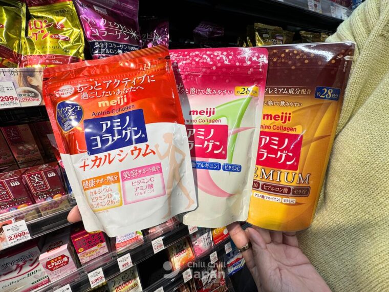 รวมไปถึงคอลลาเจนของ Meiji ตัวดังก็มีให้เลือกซื้อกันหลายสูตร
