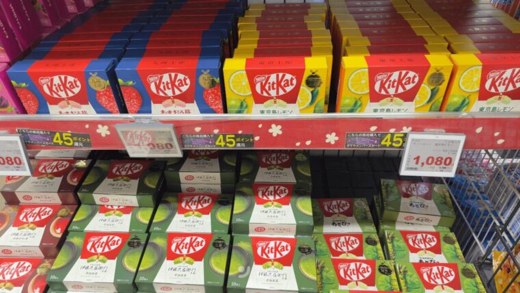 ได้แก่คิทแคท ซึ่งที่นี่มีรสที่ขายเฉพาะแต่ละภูมิภาค มาวางจำหน่ายด้วย แถมยังเหมาะจะเป็นของฝากมาก ๆ เลยนะ