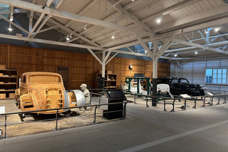 ต่อจากโถงสิ่งทอก็จะเดินเข้าสู่โถงรถยนต์ ซึ่งเล่าเรื่องการกระโดดข้ามสายงานครั้งใหญ่ที่สุดในประวัติศาสตร์อุตสาหกรรมญี่ปุ่น เมื่อ คิอิจิโร โทโยดะ (Kiichiro Toyoda) บุตรชายของซากิจิ ตัดสินใจนำบริษัทเข้าสู่โลกของยานยนต์