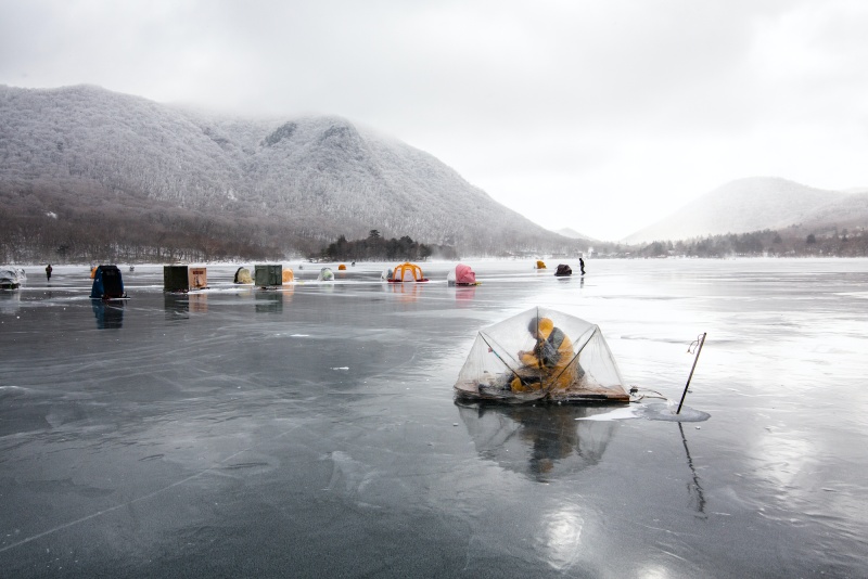 เมื่อฤดูหนาวมาถึงแล้ว ทะเลสาบจะกลายเป็นน้ำแข็ง ลองทำกิจกรรมแปลกใหม่โดยการเจาะรูน้ำแข็งเพื่อตกปลาวาคาซางิได้ที่ทะเลสาบโอนุมะในภูเขาอาคางิ และสามารถนำปลาวาคาซางิที่ตกได้ไปให้ทางร้านที่เช้าอุปกรณ์ทอดเป็นเทมปุระได้ ซึ่งรสชาติของปลาที่ตกมาได้เองนั้นต้องพิเศษกว่าที่อื่นอยู่แล้ว แม้จะหนาวถึงขั้นจำเป็นต้องหาอุปกรณ์กันหนาวมาใช้ แต่ก็อยากแนะนำกิจกกรมนี้เป็นประสบการณ์ที่ยากจะลืมเลือน
