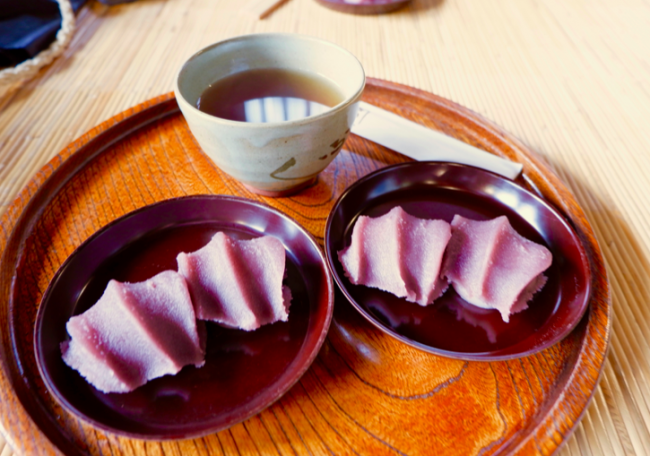 ขนมชิ้นนี้เรียกว่า Akafuku ตามชื่อร้านเลยค่ะ เป็นขนมที่มีความแตกต่างจากขนมโมจิประเภทอื่นคือ ด้านนอกจะเป็นถั่วแดง ไส้ด้านในจะเป็นโมจิ ยืดๆนุ่มๆ พอกินกับชาร้อนๆของทางร้านแล้ว ยิ่งอร่อยเข้าไปใหญ่เลย ราคาเพียง 200 เยนเท่านั่นค่ะ