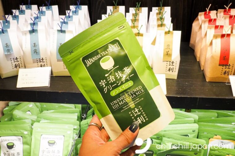 มากันที่ร้านในโซนของฝากกันบ้าง ถ้าพูดถึง “มัทฉะอูจิ” ก็ต้อง “สึจิริ” คำนี้ไม่เกินจริง เพราะสามารถซื้อมัทฉะและชาแบบอื่น ๆ ได้ที่นี่ ไม่ว่าจะเป็น โฮจิฉะ เซ็นฉะ ที่มาในแบบใบชาหรือแบบเพียวมัทฉะ